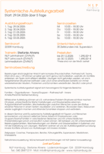 Um eine Förderung für unsere NLP Basic Ausbildung, NLP Practitioner Ausbildung, NLP Master Ausbildung, NLP Coach Ausbildung oder NLP Trainer Ausbildung zu bekommen, benötigen Sie ein Angebot von NLP Hamburg als Anbieter einer Weiterbildung. Nachstehend finden Sie hier die entsprechenden Dokumente zum Download. Klicken Sie einfach auf das Bild und reichen Sie das Dokument gemeinsam mit Ihrem Antrag auf Förderung ein. Bei Fragen kontaktieren Sie mich gern.